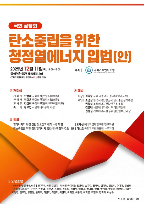ÇÑÆí, À̹ø ¼¼¹Ì³ª¿¡´Â ÇÑÁ¤¾Ö·Á¤Èñ¿ë ±¹È¸±âÈĺ¯ÈÆ÷·³ °øµ¿´ëÇ¥¿Í ±è¼ºÈ¸ ¿¬±¸Ã¥ÀÓÀÇ¿ø, Ȳº¸¿¬ ¼¿ï¿¡³ÊÁö°ø»ç »çÀåÀÌ Âü¼®Çϸç, °øÃ»È¸ Àü °úÁ¤Àº À¯Æ©ºê‘±¹È¸±âÈĺ¯ÈÆ÷·³’ä³ÎÀ» ÅëÇØ »ýÁß°èµÉ ¿¹Á¤ÀÌ´Ù.