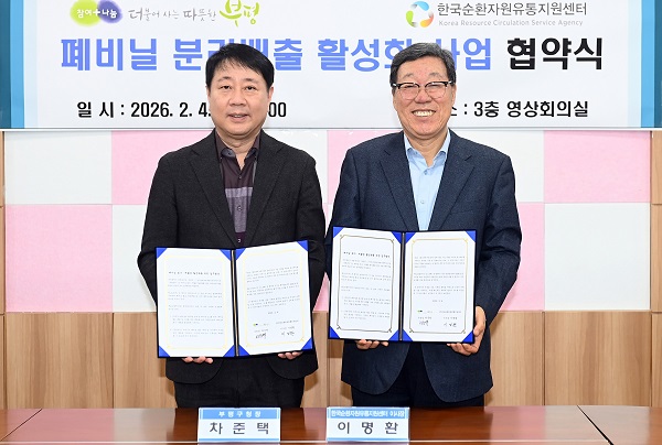 KORA¿Í ºÎÆò±¸´Â 2026³â ¼öµµ±Ç Á÷¸Å¸³ ±ÝÁö µî ÀÚ¿ø¼øÈ¯ ȯ°æÁ¤Ã¥ º¯È¿¡ µû¶ó ¼±Á¦ÀûÀ¸·Î ´ëÀÀÇÑ´Ù´Â Àü·«ÀÌ´Ù. Æóºñ´Ò ¹èÃâ·®ÀÌ ¸¹Àº »ó°¡Áö¿ª Áß½ÉÀ¸·Î ÀϹݾ²·¹±â Á¾·®Á¦ºÀÅõ¿¡ È¥ÇÕ¹èÃâµÇ´Â Æóºñ´ÒÀ» ÁÙ¿©, »ýȰÆó±â¹° °¨Ãà°ú ÀçȰ¿ë ºÐ¸®¹èÃâ Ȱ¼ºÈ¿¡ ¸ñÀûÀ» µÎ°í ÀÖ´Ù.
