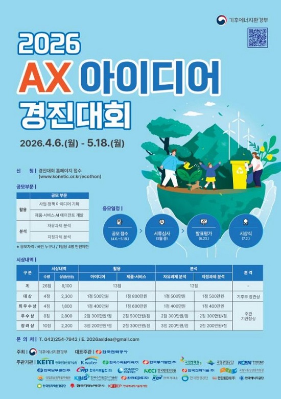 ±âÈÄ¿¡³ÊÁöȯ°æºÎ(Àå°ü ±è¼ºÈ¯)´Â ºÎó »êÇÏ 24°³ °ø°ø±â°ü°ú ÇÔ²² Àü ±¹¹ÎÀ» ´ë»óÀ¸·Î ‘2026 ±âÈĺΠ¿¡ÀÌ¿¢½º(AX) ¾ÆÀ̵ð¾î °æÁø´ëȸ’¸¦ 4¿ù 6ÀϺÎÅÍ 5¿ù 28ÀϱîÁö °³ÃÖÇÑ´Ù°í ¹àÇû´Ù.