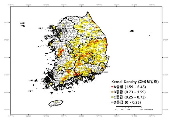 ±¹¸³»ê¸²°úÇпøÀº ȸñº¸ÀÏ·¯ °ø°£¹Ðµµ ºÐ¼® °á°ú¸¦ A~D 4°³ µî±ÞÀ¸·Î ±¸ºÐÇϰí, À̸¦ ±¹°¡»êºÒÀ§Ç迹º¸½Ã½ºÅÛÀÇ °Ë»ö·¹À̾ Ãß°¡ÇØ ´©±¸³ª ȸñº¸ÀÏ·¯ ¹ÐÁý ÇöȲÀ» Áöµµ·Î È®ÀÎÇÒ ¼ö ÀÖµµ·Ï Çß´Ù.