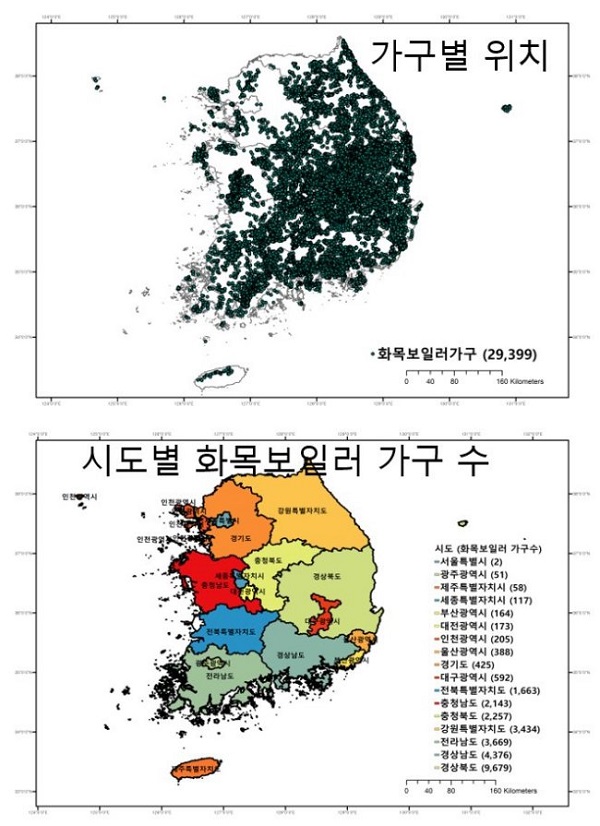 À̹ø ºÐ¼®Àº »ê¸²Ã»ÀÌ Á¦°øÇÑ Àü±¹ »ê¸² ÀÎÁ¢ Áö¿ª(»ê¸²À¸·ÎºÎÅÍ 100m À̳»)¿¡ À§Ä¡ÇÑ È¸ñº¸ÀÏ·¯ »ç¿ë°¡±¸ 29,399°³ ÁöÁ¡ÀÇ À§Ä¡ Á¤º¸¸¦ Ȱ¿ëÇØ ¼öÇàµÆ´Ù. 5§° ¹Ý°æ ±âÁØ ´ÜÀ§ ¸éÀû´ç ȸñº¸ÀÏ·¯ »ç¿ë°¡±¸ÀÇ ¹ÐÁýµµ¸¦ »êÃâÇÑ °á°ú, °æºÏ·°æ³²·Àü³²·ÃæºÏ·Ãæ³²·°¿ø µî »ê°£ Áö¿ª¿¡ ÁýÁß ºÐÆ÷ÇÏ´Â °æÇâÀÌ ³ªÅ¸³µ´Ù.