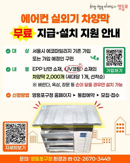 ¿µµîÆ÷±¸°¡ ´Ù°¡¿À´Â ¿©¸§Ã¶ ¹«´õÀ§¿¡ ´ëºñÇØ ±¸¹ÎµéÀÇ ³Ã¹æºñ ºÎ´ãÀ» ÁÙÀÌ°í ¿¡³ÊÁö È¿À²À» ³ôÀ̱â À§ÇÑ ‘¿¡¾îÄÁ ½Ç¿Ü±â Â÷¾ç¸· ¼³Ä¡ Áö¿ø»ç¾÷’À» ÃßÁøÇÑ´Ù°í ¹àÇû´Ù.