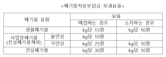 ¿ì¸®³ª¶ó´Â 2018³âºÎÅÍ Æó±â¹°À» ¼Ò°¢ ¶Ç´Â ¸Å¸³ óºÐÇÏ´Â °æ¿ì Æó±â¹°Ã³ºÐºÎ´ã±ÝÀ» ºÎ°ú ¡¼öÇÏ´Â Á¦µµ¸¦ ½ÃÇàÇϰí ÀÖ´Ù. À̴ ȯ°æÀûÀ¸·Î °¡Àå ¿ì¼±½ÃµÇ´Â ó¸® ¹æ¹ýÀÌ ÀçȰ¿ëÀ̸ç, ¸Å¸³Àº ÃÖÈÄÀÇ ¼ö´ÜÀ̱⠶§¹®¿¡ ºÎ´ã±Ý ºÎ°ú¸¦ ÅëÇØ ¸Å¸³°ú ¼Ò°¢À» ¾ïÁ¦Çϰí, ó¸® ¹æ¹ýÀ» ÀçȰ¿ëÀ¸·Î °áÁ¤Çϵµ·Ï À¯ÀÎÇϱâ À§ÇØ Ã³ºÐ ¹æ¹ý¿¡ µû¶ó kg´ç ¼Ò°¢ 10¿ø, ¸Å¸³ 10~30¿øÀ» ºÎ°úÇϰí ÀÖ´Ù.
