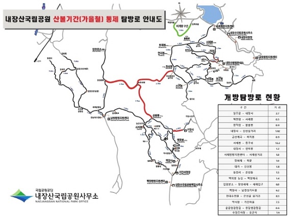 ÃâÀÔÀÌ ÅëÁ¦µÇ´Â ޹æ·Î´Â ±îÄ¡ºÀ´É¼±»ï°Å¸®-¼øÃ¢»õÀç(2.6km), À强»õÀç-»óȲºÀ(4km), ±¸¾Ï»ç-¹éÇкÀ ´É¼±(0.9km) ÃÑ 3°³ ±¸°£ 7.5kmÀ̸ç, ±×¹Û¿¡ ޹æ·Î´Â Á¤»ó °³¹æÇÑ´Ù. ÀÚ¼¼ÇÑ »êºÒÅëÁ¦Á¤º¸´Â ±¹¸³°ø¿ø ȨÆäÀÌÁö¿¡¼ È®ÀÎÇÒ ¼ö ÀÖÀ¸¸ç, ÁÖ¿ä ÁøÀԷο¡ ÅëÁ¦ ¾È³» Çö¼ö¸· ¹× ¹®ÀÚÀü±¤ÆÇ µîÀ» Ȱ¿ëÇØ È«º¸Çϰí ÀÖ´Ù.