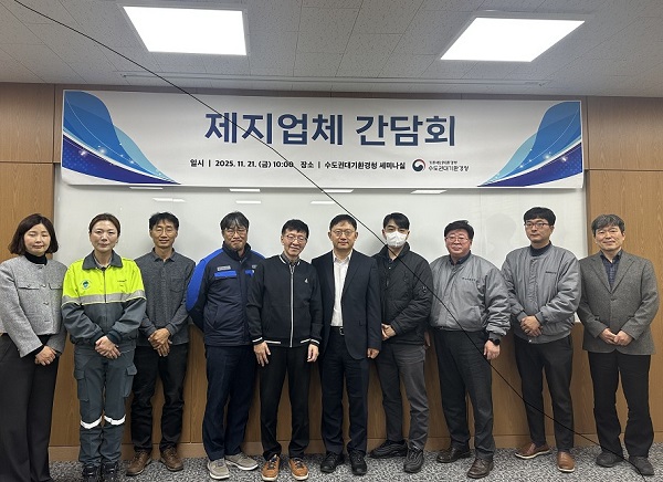 | ¡ã ÀÌ»óÁø ¼öµµ±Ç´ë±âȯ°æÃ»Àå(¿À¸¥ÂÊ ´Ù¼¸¹øÂ°)ÀÌ 21ÀÏ ¾ÇÃë Àú°¨À» À§ÇÑ Á¦Áö¾÷ °£´ãȸ¿¡ Âü¼®ÇÑ ¾÷ü ´ëÇ¥µé°ú ±â³äÃÔ¿µÇϰí ÀÖ´Ù.(»çÁø=¼öµµ±Ç´ë±âȯ°æÃ» Á¦°ø) |