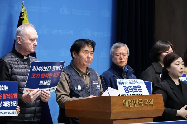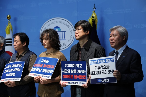 ´õºÒ¾î¹ÎÁÖ´ç ±èÁ¤È£ ÀÇ¿ø, Á¶±¹Çõ½Å´ç ¼¿ÕÁø ÀÇ¿ø, Áøº¸´ç Á¤Çý°æ ÀÇ¿øÀº 25ÀÏ ±¹È¸ ¼ÒÅë°ü¿¡¼ ¡¸¼®ÅºÈ·Â¹ßÀü Áߴܰú Á¤ÀǷοî Àüȯ¿¡ °üÇÑ Æ¯º°¹ý(ÀÌÇÏ ‘Á¤ÀǷοî Å»¼®Åº¹ý’)¡¹ °øµ¿´ëÇ¥¹ßÀÇ ±âÀÚȸ°ßÀ» ¿°í, "±¹°¡°¡ ±âÈÄÀ§±â¸¦ ¸·°í, ¿ì¸® ½Ã¹ÎµéÀÇ »îÀ» Áö۱â À§Çؼ´Â Å»¼®Åº ½ÃÁ¡À» ¾Õ´ç±â°í ±× °úÁ¤¿¡¼ ³ëµ¿ÀÚ¿Í Áö¿ªÀ» ¿Ü¸éÇÏÁö ¾Ê´Â ¹ýÀû ±â¹ÝÀ» ¸¶·ÃÇÏ´Â °ÍÀÌ ÇÊ¿äÇÏ´Ù"¶ó°í ¹àÇû´Ù.
