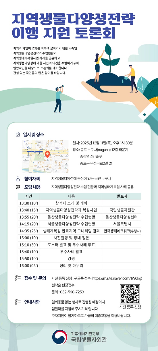 ±âÈÄ¿¡³ÊÁöȯ°æºÎ ¼Ò¼Ó ±¹¸³»ý¹°ÀÚ¿ø°ü(°üÀå À¯È£)Àº ¿À´Ã(11ÀÏ) ¿ÀÈÄ 1½Ã30ºÐ ‘´ë¿Õºôµù ´©±¸³ª(¼¿ï Á¾·Î±¸ ¼ÒÀç)’¿¡¼ Áö¹æÁ¤ºÎÀÇ »ý¹°´Ù¾ç¼º Àü·« ¼ö¸³°ú ÀÌÇàÀ» Áö¿øÇϱâ À§ÇÑ ‘Áö¿ª»ý¹°´Ù¾ç¼ºÀü·« ÀÌÇà Áö¿ø Åä·Ðȸ’¸¦ °³ÃÖÇÑ´Ù°í ¹àÇû´Ù.