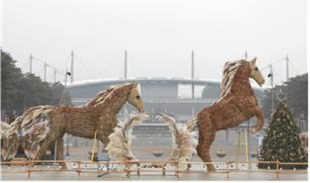 ¾à ³ôÀÌ 4.5m, ±æÀÌ 5m, µÑ·¹ 1.5~2m ±Ô¸ðÀÇ Çü ¸»°ú ¾Æ¿ì ¸»Àº ¾à 4ÅæÀÇ ¾ï»õ¸¦ Ȱ¿ëÇØ Á¦ÀÛÇÑ ÀÛǰÀ¸·Î, µÎ Á¶Çü¹°Àº 2026³â ½Ã¹ÎµéÀÇ Çູ°ú µµ¾àÀ» ±â¿øÇÏ´Â ÃëÁö¿¡¼ ±âȹ·Á¦À۵Ǿú´Ù.