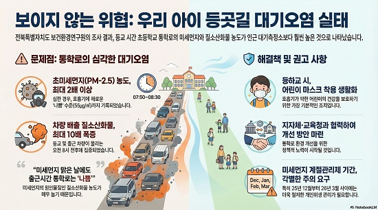 ÀüºÏƯº°ÀÚÄ¡µµ º¸°Çȯ°æ¿¬±¸¿ø(¿øÀå Àü°æ½Ä)Àº 11ÀÏ µµ³» ÃʵîÇб³ ÅëÇзθ¦ ´ë»óÀ¸·Î ½Ç½ÃÇÑ ´ë±â¿À¿° ½ÇÅÂÁ¶»ç °á°ú¸¦ ¹ßÇ¥Çϸç, ¾î¸°ÀÌ °Ç° º¸È£¸¦ À§ÇÑ ÅëÇзΠ¹Ì¼¼¸ÕÁö ´ëÀÀ Çʿ伺À» °Á¶Çß´Ù.