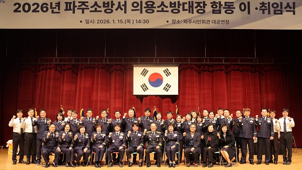 ÆÄÁּҹ漴 1¿ù 15ÀÏ ÆÄÁֽùÎȸ°ü ´ë°ø¿¬Àå¿¡¼ ¡º2026³â ÆÄÁÖ¼Ò¹æ¼ ÀÇ¿ë¼Ò¹æ´ë ´ëÀå ÇÕµ¿ ÀÌ·ÃëÀӽġ»À» ¿°í, Áö¿ª ¾ÈÀüÀ» À§ÇØ Çå½ÅÇØ¿Â ÀÌÀÓ ´ëÀåµéÀÇ °ø·Î¿¡ °¨»ç¸¦ ÀüÇÏ´Â ÇÑÆí, »õ·Î¿î ¸®´õµé°ú ÇÔ²² ‘ÀÇ¿ë’ÀÇ »ç¸íÀ» À̾ ¶æÀ» ´ÙÁ³´Ù.