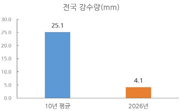 ±â»óû °üÃø °á°ú¿¡ µû¸£¸é ¿ÃÇØ 1¿ù Àü±¹ ´©Àû °¼ö·®Àº ¿¹³â ´ëºñ 16.3% ¼öÁØÀ¸·Î Å©°Ô °¨¼ÒÇß´Ù.