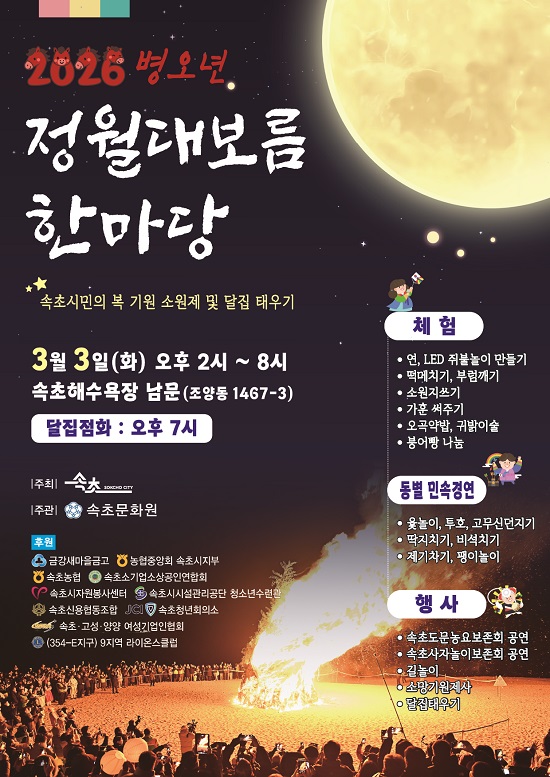 ¼ÓÃʽà °ü°èÀÚ´Â “Á¤¿ù´ëº¸¸§Àº ½Ã¹Î ¸ðµÎ°¡ ÇÔ²² ¸ð¿© ¼·ÎÀÇ ¾È³ç°ú º¹À» ±â¿øÇÏ´Â ¶æ±íÀº ³¯”À̶ó¸ç “¾ÈÀüÇϰí dz¼ºÇÑ Çà»ç Áغñ¸¦ ÅëÇØ ½Ã¹Î°ú °ü±¤°´ ¸ðµÎ°¡ Áñ±æ ¼ö ÀÖ´Â ÈÇÕÀÇ ÀåÀ» ¸¶·ÃÇϰڴٔ°í ¹àÇû´Ù.