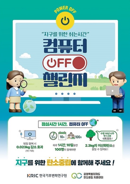Çѱ¹±âÈĺ¯È¿¬±¸¿ø(¿øÀå ÃÖº´¼ö) °¿øÆ¯º°ÀÚÄ¡µµ ź¼ÒÁ߸³ Áö¿ø¼¾ÅÍ´Â Á¦56ÁÖ³â Áö±¸ÀÇ ³¯(4¿ù 22ÀÏ)À» ¸Â¾Æ 4¿ù 20ÀϺÎÅÍ 5¿ù 1ÀϱîÁö µµ³» °ø°ø±â°ü ´ë»óÀ¸·Î 「Áö±¸¸¦ À§ÇÑ ½¬´Â½Ã°£ ‘ÄÄÇ»ÅÍ OFF’ 縰Áö」¸¦ ÁøÇàÇÑ´Ù°í ¹àÇû´Ù.
