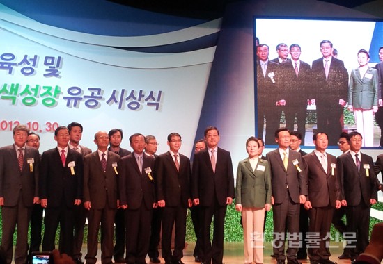 °³¸·ÀÏÀÎ 30ÀÏ¿¡´Â ÄÚ¿¢½º ÄÁÆÛ·±½º·ë¿¡¼ ±èȲ½Ä ±¹¹«ÃѸ®°¡ Âü¼®ÇÑ °¡¿îµ¥ ‘2012 ģȯ°æ»ê¾÷ À°¼º ¹× Àúź¼Ò ³ì»ö¼ºÀå À¯°ø’ ½Ã»ó½Ä°ú ¹Ú¶÷ȸ °³¸·½ÄÀÌ °³ÃֵǾú´Ù. À̹ø Æ÷»ó¿¡¼´Â ´Ù³â°£ Àúź¼Ò ³ì»ö°æ¿µ ÃßÁøÀ¸·Î ȯ°æº¸Àü°ú ¿Â½Ç°¡½º Àý°¨¿¡ ¸ÅÁøÇØ ¿Â 8ÀÎÀÇ °³ÀÎ ¹× ´Üü°¡ Á¤ºÎÆ÷»ó, 24ÀÎÀÌ È¯°æºÎÀå°ü ǥâ µîÀÇ ¿µ¿¹¸¦ ¾È°Ô µÆ´Ù.