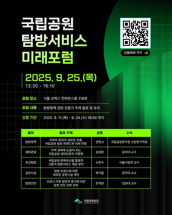 ȯ°æºÎ »êÇÏ ±¹¸³°ø¿ø°ø´Ü(ÀÌ»çÀå Áִ뿵)Àº ¿À´Â 9¿ù 25ÀÏ ¼¿ï ÄÚ¿¢½º ÄÁÆÛ·±½º·ë¿¡¼¡¸±¹¸³°ø¿ø Ž¹æ ¼ºñ½º ¹Ì·¡ Æ÷·³¡¹À» °³ÃÖÇÑ´Ù°í ¹àÇû´Ù.