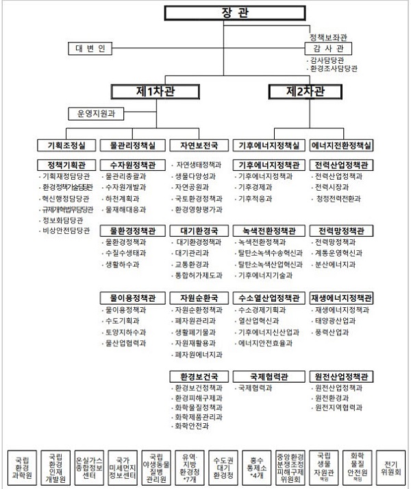 1Â÷°ü ¼Ò¼ÓÀ¸·Î ±âȹÁ¶Á¤½Ç, ¹°°ü¸®Á¤Ã¥½Ç°ú ÀÚ¿¬º¸Àü±¹, ´ë±âȯ°æ±¹, ÀÚ¿ø¼øÈ¯±¹, ȯ°æº¸°Ç±¹À» ÆíÁ¦ÇÏ¿© ¡âÇÏõ ÀÚ¿¬¼º ¹× »ýŰèÀÇ È¸º¹, ¡â¹Ì¼¼¸ÕÁö Àú°¨, ¡â¼øÈ¯°æÁ¦ ±¸Ãà, ¡âÈÇй°Áú ¾ÈÀü µî »õÁ¤ºÎ ±¹Á¤°úÁ¦¿¡ Æ÷ÇÔµÈ ÇÙ½É È¯°æÁ¤Ã¥ÀÇ Â÷Áú ¾ø´Â ÃßÁø°ú ±¹¹Î ü°¨Çü ȯ°æ ¼ºñ½º¸¦ È®´ëÇØ ³ª°£´Ù.