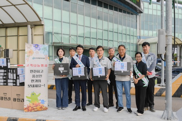 ¶ÇÇÑ, 9¿ù 29ÀÏ¿¡´Â ¼öµµ±Ç¸Å¸³Áö ÅëÇÕ°è·®´ë¿¡¼ Æó±â¹° ¿î¹ÝÂ÷·® ±â»ç¸¦ ´ë»óÀ¸·Î ‘Ãß¼®¸ÂÀÌ °í°´ ³ª´® Çà»ç’¸¦ ¿°í, ÀÓÁ÷¿øµéÀÌ ¸íÀý ³ª´®¹°Ç°À» Á÷Á¢ Àü´ÞÇÏ¸ç °¨»ç¿Í °Ý·ÁÀÇ ¶æÀ» ÀüÇß´Ù.