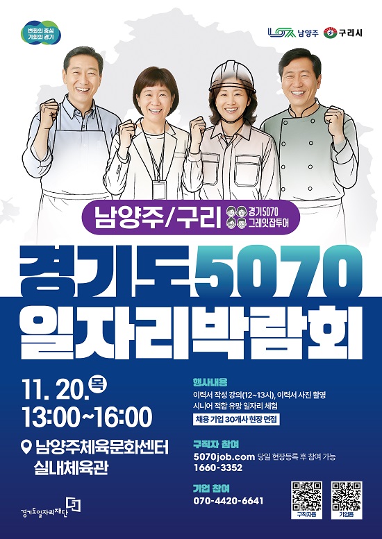 °æ±âµµ¿Í °æ±âµµÀÏÀÚ¸®Àç´ÜÀÌ ¿À´Â 11¿ù 20ÀÏ ³²¾çÁÖüÀ°¹®È¼¾ÅÍ¿¡¼ ‘°æ±âµµ 5070 ÀÏÀÚ¸®¹Ú¶÷ȸ in ³²¾çÁÖ+±¸¸®’¸¦ °³ÃÖÇÑ´Ù.