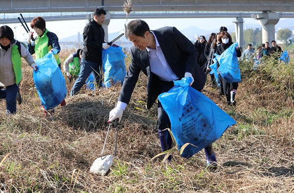 | ¡ã È«µ¿°ï ÇѰÀ¯¿ªÈ¯°æÃ»ÀåÀÌ 12ÀÏ °æ±âµµ ±¤Áֽà °æ¾Èõ¿¡¼ ±ú²ýÇÑ °æ¾Èõ »ì¸®±â ÇÏõÁ¤ÈȰµ¿¿¡ Âü¿©ÇØ ¾²·¹±â¸¦ Áݰí ÀÖ´Ù. <»çÁøÁ¦°ø=ÇѰÀ¯¿ªÈ¯°æÃ»> |