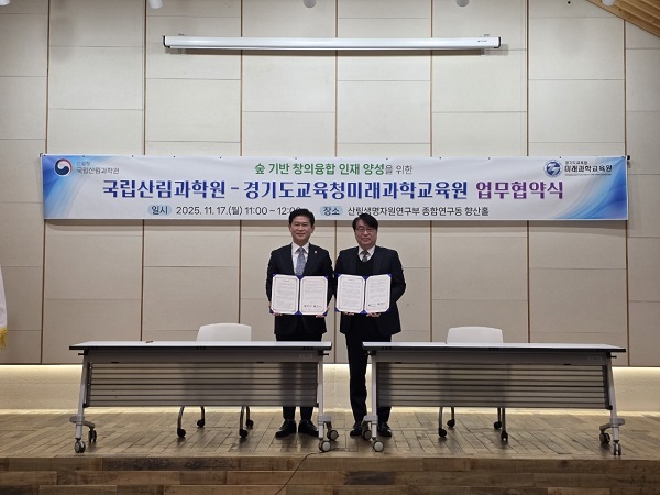 »ê¸²Ã» ±¹¸³»ê¸²°úÇпø(¿øÀå ±è¿ë°ü)Àº 17ÀÏ ¼ö¿øÆ¯·Ê½Ã »ê¸²»ý¸íÀÚ¿ø¿¬±¸ºÎ¿¡¼ °æ±âµµ±³À°Ã»¹Ì·¡°úÇб³À°¿ø(¿øÀå ¹ÚÁ¤Çà)°ú ‘½£±â¹Ý âÀÇÀ¶ÇÕÇü ÀÎÀç ¾ç¼º’À» À§ÇÑ ¾÷¹«Çù¾à(MOU)À» ü°áÇß´Ù°í ¹àÇû´Ù.