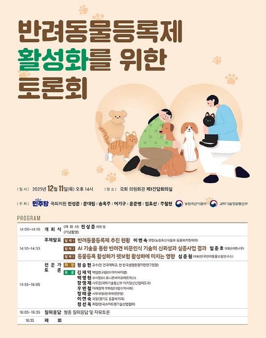 Åä·Ðȸ¿¡¼´Â ºñ¹® µî »ýüÁ¤º¸ ±â¹Ý AI ÀΰøÁö´É ±â¼ú µî »õ·Î¿î ¹Ý·Áµ¿¹°µî·Ï¹æ½Ä µµÀÔ¿¡ ´ëÇÑ Á¤ºÎ·Àü¹®°¡·»ê¾÷°è·½Ã¹Î»çȸÀÇ ÀǰßÀ» Æø³Ð°Ô ¼ö·ÅÇϰí, ½ÇÁúÀûÀÎ Á¤Ã¥ ´ë¾ÈÀ» ¸ð»öÇÒ ¿¹Á¤ÀÌ´Ù.