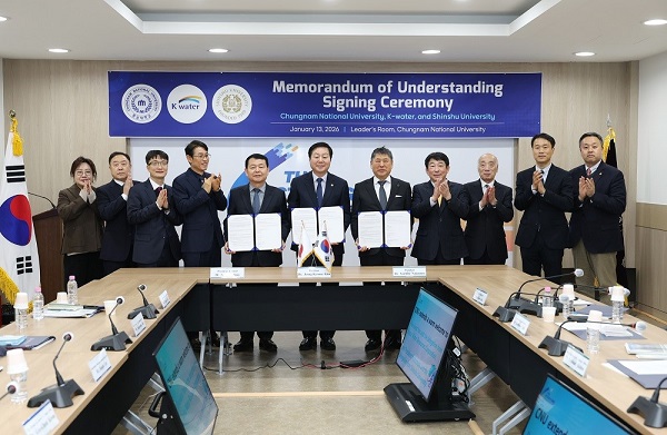 Çѱ¹¼öÀÚ¿ø°ø»ç(K-water, »çÀå À±¼®´ë)´Â 1¿ù 13ÀÏ ´ëÀü Ãæ³²´ëÇб³ ´ëÇк»ºÎ ¸®´õ½º·ë¿¡¼ Ãæ³²´ëÇб³, ÀϺ» ½Å½´´ëÇб³¿Í ¹° ºÐ¾ß ±â¼ú ¹ßÀü°ú ÀÎÀç ¾ç¼ºÀ» À§ÇÑ ¾÷¹«Çù¾à(MOU)À» ü°áÇß´Ù.