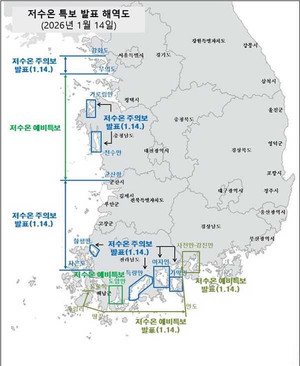ÀÌ´Â ±¹¸³¼ö»ê°úÇпøÀÌ ÀÎõ ¿¬¾È, Ãæ³² °¡·Î¸²¸¸, õ¼ö¸¸, Àü³² ÇÔÆò¸¸, µæ·®¸¸, °¡¸·¸¸ µî 11°³ ÇØ¿ª¿¡ Àú¼ö¿Â ÁÖÀǺ¸¸¦ ¹ßÇ¥(1¿ù 14.ÀÏ 10½Ã)ÇÔ¿¡ µû¸¥ Á¶Ä¡ÀÌ´Ù.