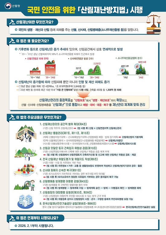 »ê¸²Ã»(ûÀå ±èÀÎÈ£)Àº 2025³â 1¿ù 31ÀÏ Á¦Á¤µÈ ‘»ê¸²Àç³¹æÁö¹ý’ÀÌ 1³â¿©ÀÇ Áغñ ±â°£À» °ÅÃÄ 2026³â 2¿ù 1ÀϺÎÅÍ º»°Ý ½ÃÇàµÊ¿¡ µû¶ó, ¹ý·üÀÇ ½ÃÇàÀ» À§ÇÑ ½ÃÇà·É°ú ½ÃÇà±ÔÄ¢À» Á¦Á¤Çß´Ù°í ¹àÇû´Ù.