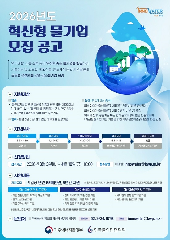 ±èÁö¿µ ±âÈÄ¿¡³ÊÁöȯ°æºÎ ¹°ÀÌ¿ëÁ¤Ã¥°üÀº “Çõ½ÅÇü ¹°±â¾÷Àº ±¹³» °¼Ò ¹°±â¾÷À» ¹ß±¼·À°¼ºÇÏ´Â ÇÙ½É ÇÁ·Î±×·¥À¸·Î ÀÚ¸®¸Å±èÇÏ¿´´Ù”¶ó¸ç, “¾ÕÀ¸·Îµµ ¿ì¼öÇÑ ±â¼ú·Â°ú ¼öÃâ °æÀï·ÂÀ» °®Ãá ¹°±â¾÷À» Áö¼ÓÀûÀ¸·Î ¹ß±¼Çϰí, ¿¬±¸°³¹ßºÎÅÍ ÇØ¿Ü ½ÃÀå ÁøÃâ±îÁö ´Ü°èº° ¹ÐÂø Áö¿øÀ» ÅëÇØ ±¹³» ¹°»ê¾÷ÀÇ Çõ½Å°ú ¼ºÀåÀ» µÞ¹ÞħÇϰڴٔ¶ó°í ¹àÇû´Ù.