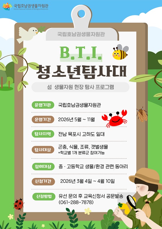¡ºB.T.I. û¼Ò³â Ž»ç´ë¡»´Â Áß·°íµîÇб³ »ý¹°·È¯°æ °ü·Ã µ¿¾Æ¸®¸¦ ´ë»óÀ¸·Î Çϸç, 2026³â 5¿ùºÎÅÍ 12¿ù±îÁö ¿¬°£ °úÁ¤À¸·Î ÁøÇàµÈ´Ù.