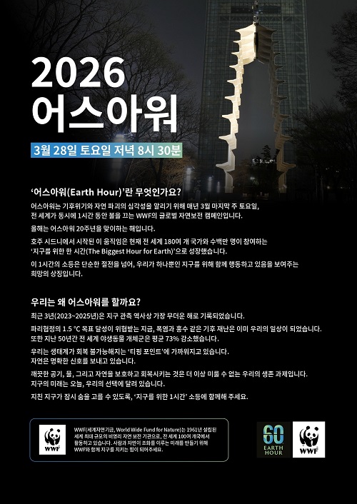 °í¾çƯ·Ê½Ã(½ÃÀå À̵¿È¯)´Â ¿À´Â 3¿ù 28ÀÏ ¿ÀÈÄ 8½Ã 30ºÐºÎÅÍ 9½Ã 30ºÐ±îÁö ÁøÇàµÇ´Â ±Û·Î¹ú ȯ°æ Ä·ÆäÀÎ ‘¾î½º¾Æ¿ö(Earth Hour)’¿¡ µ¿ÂüÇÑ´Ù.