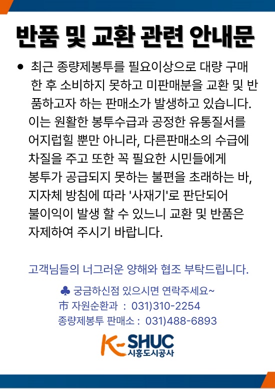ƯÈ÷ ½ÃÈïµµ½Ã°ø»ç¿¡´Â Á¾·®Á¦ºÀÅõ ȯºÒ °ü·Ã ¹®Àǰ¡ ¼âµµÇϰí ÀÖÀ¸³ª, ÇöÇà ±ÔÁ¤»ó Á¾·®Á¦ºÀÅõ ȯºÒÀº ºÒ°¡ÇÏ´Ù´Â Á¡À» ¾È³»Çϰí ÀÖ´Ù. ½Ã´Â ÆÇ¸Å¼Ò¿Í ½Ã¹ÎÀ» ´ë»óÀ¸·Î ¿Ã¹Ù¸¥ À¯Åë ÀýÂ÷¿Í ȯºÒ ºÒ°¡ ±âÁØÀ» Áö¼ÓÀûÀ¸·Î ¾È³»Çϰí ÀÖ´Ù.