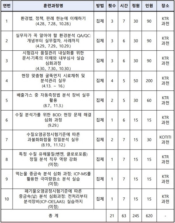 ±³À°°úÁ¤Àº ȯ°æ¿À¿°°øÁ¤½ÃÇè±âÁØ 13°³ ºÐ¾ß 1,251Á¾ÀÇ ½ÃÇè¹æ¹ýÀ» ´ë»óÀ¸·Î ¿ÃÇØ 10°³ °úÁ¤À» °³¼³Çϸç, ÇâÈÄ ¸Å³â ´Ü°èÀûÀ¸·Î È®´ëµÉ ¿¹Á¤ÀÌ´Ù.
